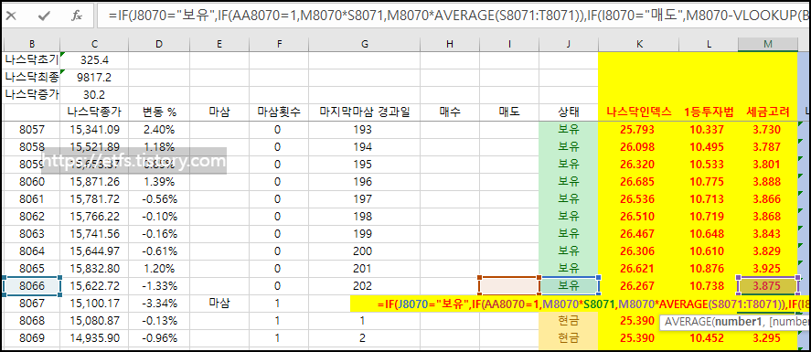 나스닥 지수에 마삼룰을 적용해서 사팔사팔 했을 경우는 2192%로 떨어진다.
