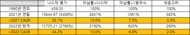 1990년 연초에 나스닥 인덱스에 몰빵하고 가만히 있었다면
