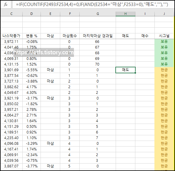 매도 시그널을 처음에 이렇게 했다가 사실 매도 시그널은 별도로 필요가 없고 마삼이 뜨면 무조건 현금화이니
