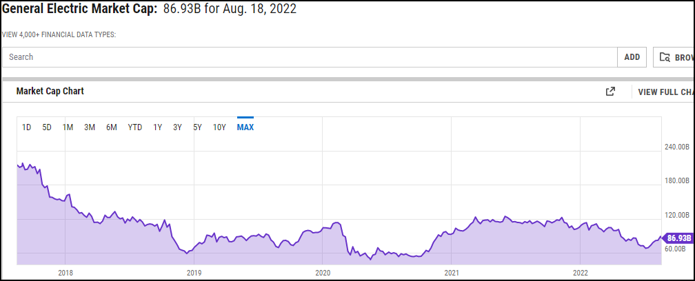 As of August 2022 General Electric has a market cap of $87.51 Billion. This makes General Electric the world's 148th most valuable company according to our data.