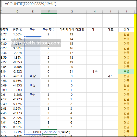 이렇게 매수 매도 시그널에 의해 오늘의 상태 부분까지 해놓았다면 그 다음은 쉽다.